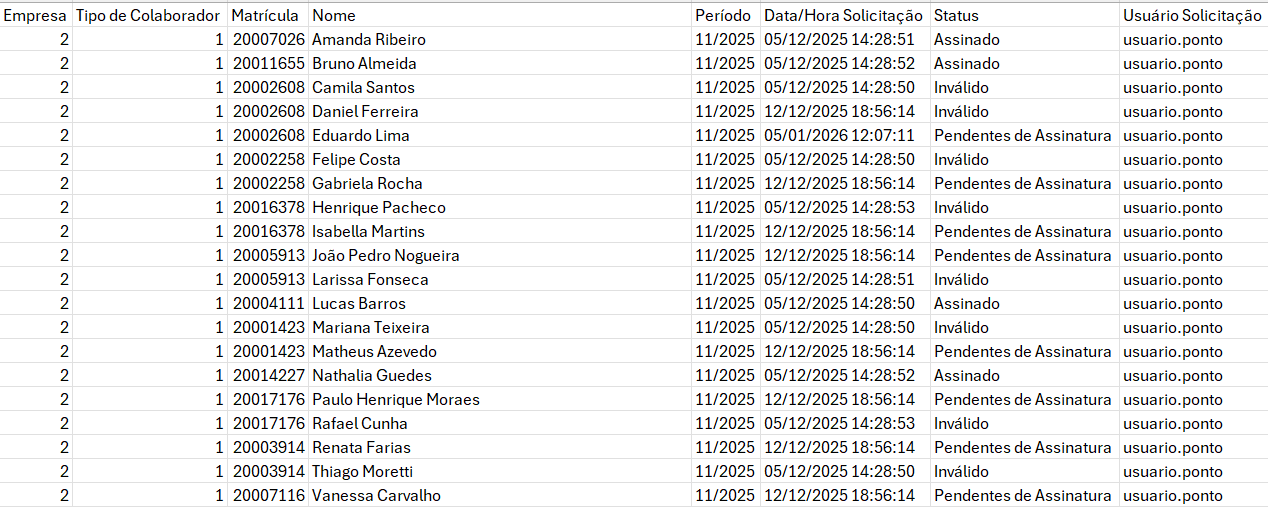 Listar e acompanhar o status das solicitações de assinatura dos espelhos de ponto gerados na apuração.